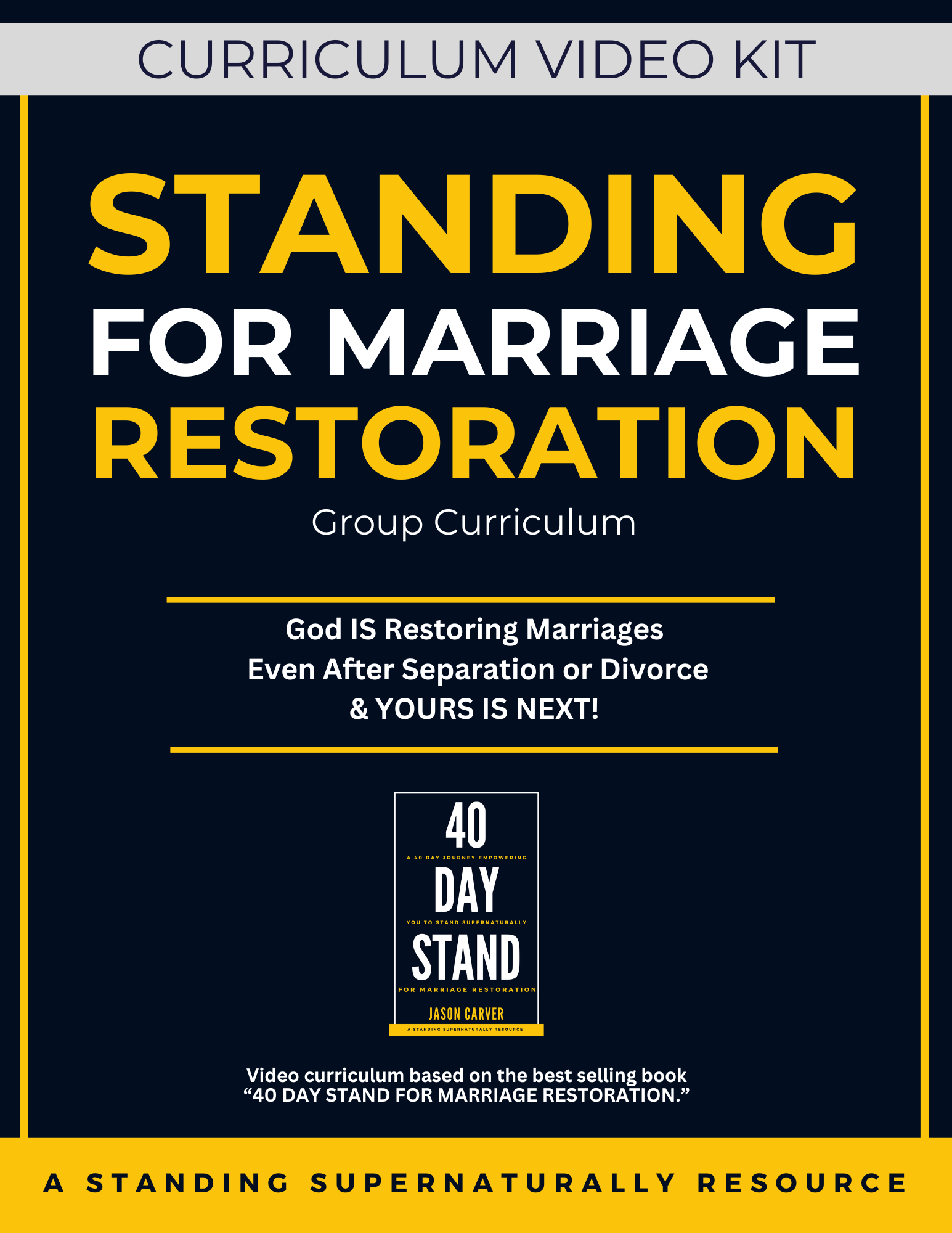 A 9-session video curriculum that equips churches to help those who are standing and believing for their marriage to be restored even after separation or divorce. This is perfect for small groups, Bible studies, and Sunday school classes to help participants believe for supernatural reconciliation—rooted in Scripture, saturated in hope, and aligned to a focused 40-day journey.